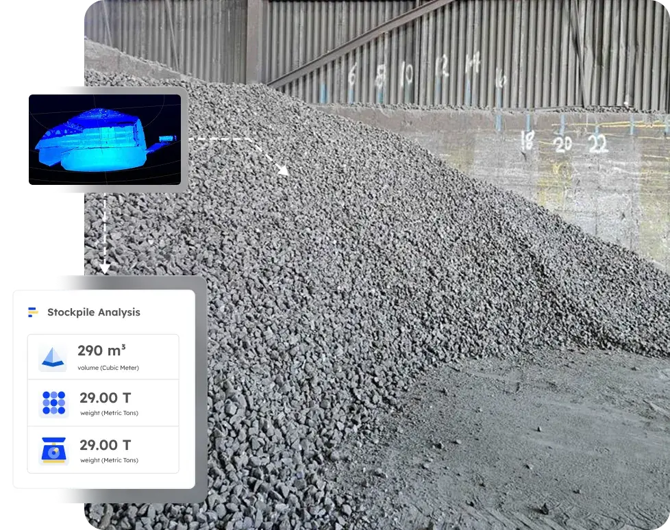 Our AI-driven volumetric estimation solution greatly improved the accuracy of stockpile measurements, eliminating manual errors. This improvement boosted operational efficiency and also reduced safety hazards for workers, ultimately optimizing supply planning and increasing overall productivity for the client.